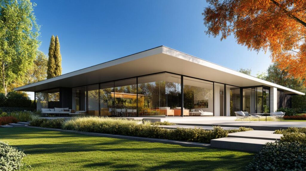El diseño exterior de una vivienda ecológica moderna se fundamenta en la integración armoniosa entre forma, función y entorno. La orientación de la construcción desempeña un papel determinante, ya que permite maximizar la captación de luz natural y optimizar la ventilación cruzada, reduciendo así la necesidad de sistemas artificiales de climatización. Los grandes ventanales orientados hacia el ecuador facilitan la entrada de luz solar durante los meses fríos, mientras que los aleros estratégicamente ubicados protegen del exceso de radiación en verano, logrando un equilibrio térmico natural que disminuye el consumo de energía en cualquier estación del año.